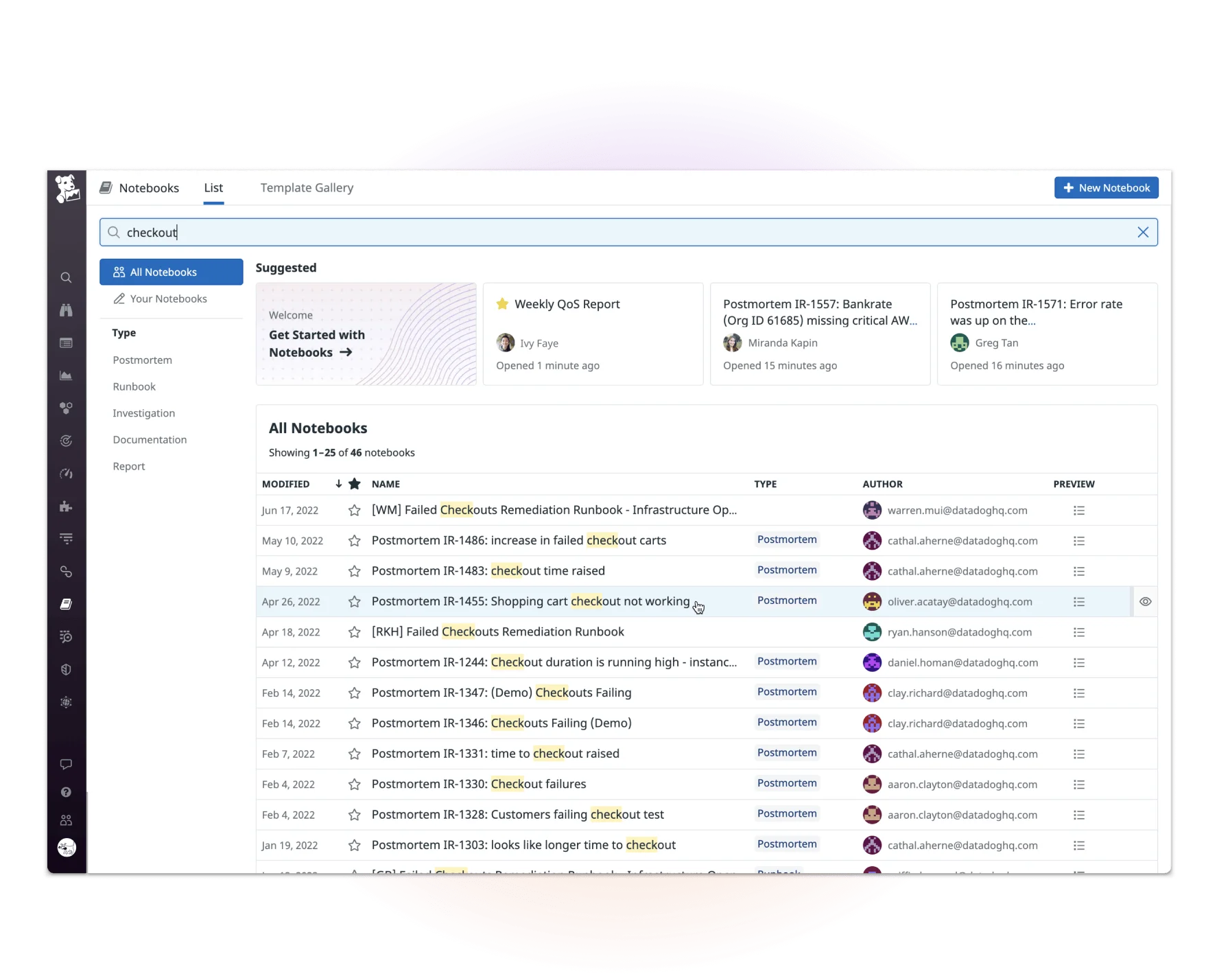 The redesign of Notebooks turned it into a core workflow tool across incident response, infrastructure analysis, and collaborative postmortems. During the span of these improvements, the number of daily organizations using the tool more than doubled. In larger orgs, features like real-time editing, searchability, and structured documentation made the tool far more usable at scale. Several design patterns introduced through this work were later adopted across the platform, contributing to a more consistent and modernized product experience.