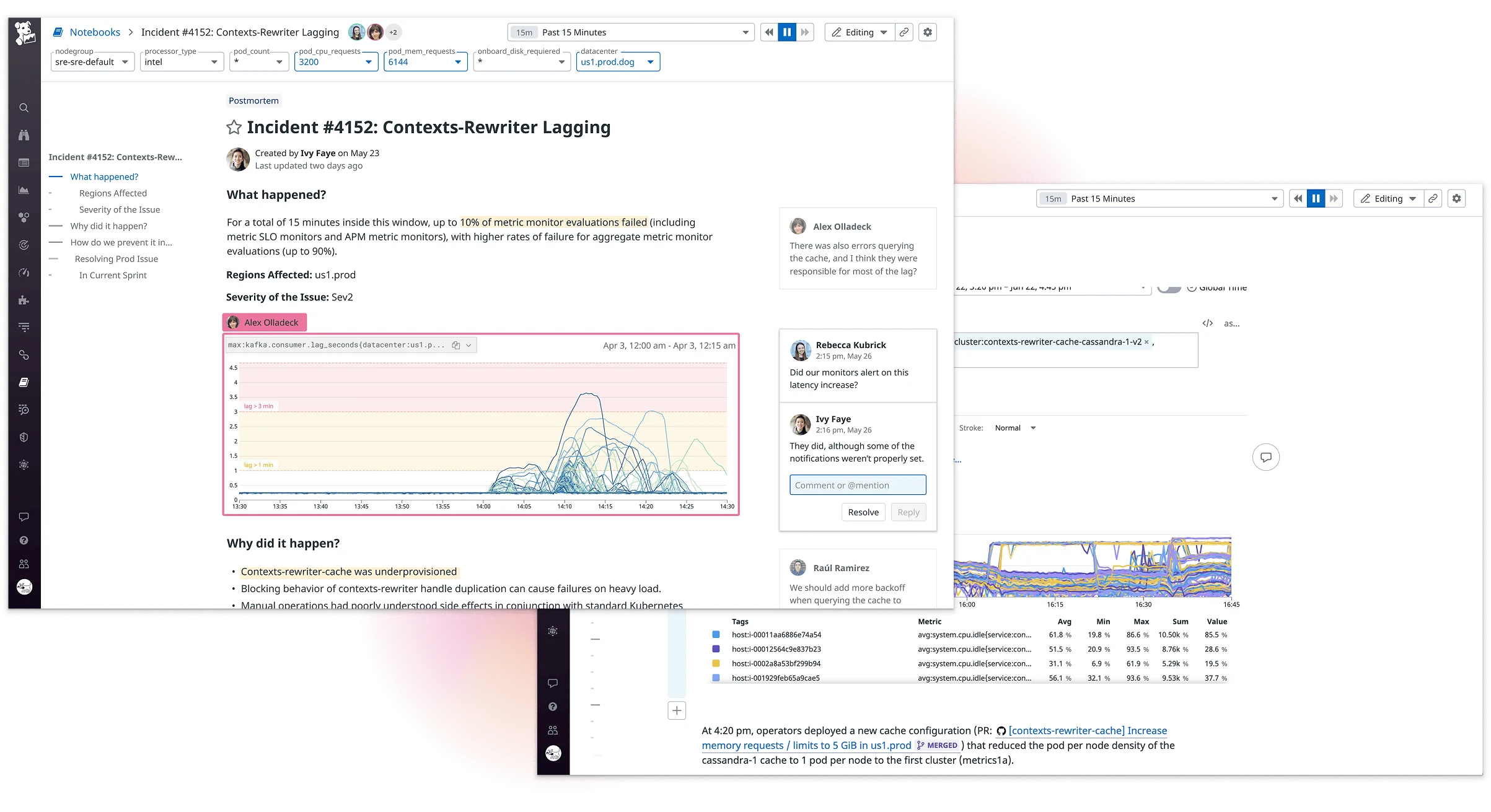 Engineering teams often rely on screenshots, Slack threads, and scattered documents to investigate incidents and share findings. These workflows make it hard to combine live data with human context, and nearly impossible to reconstruct decisions after the fact. Even within monitoring platforms, there's often no clear place to collaborate, document investigations, or hand off work across teams. As a result, valuable insights get lost, and incident timelines stretch longer than they should.